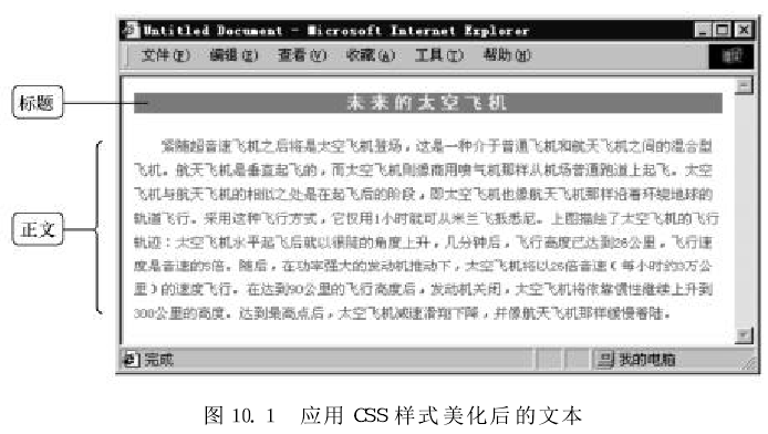 應(yīng)用css樣式分別對(duì)標(biāo)題及正文進(jìn)行文本格式化,瀏覽效果如圖所示。