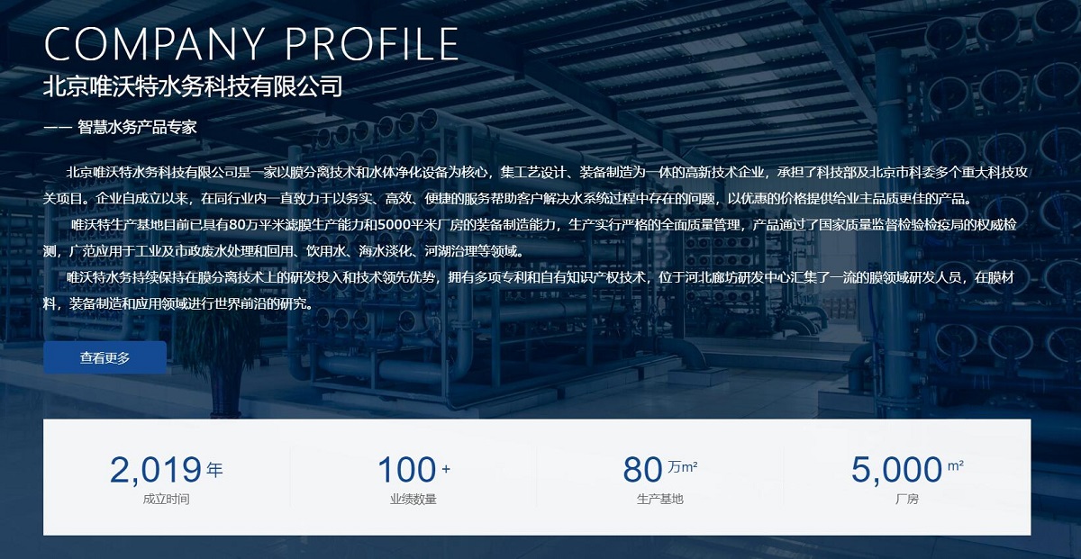 北京唯沃特水務(wù)科技有限公司品牌網(wǎng)站建設(shè)案例