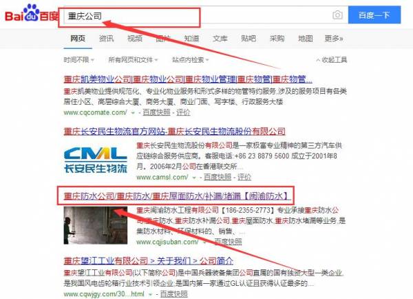 我們公司與重慶閩渝防水工程有限公司合作中,對(duì)這個(gè)公司所經(jīng)營(yíng)的防水補(bǔ)漏這個(gè)行業(yè)的關(guān)鍵詞搜索排名積累了豐富的經(jīng)驗(yàn);同時(shí)在該行業(yè)的關(guān)鍵詞搜索排名等多元化的防水補(bǔ)漏領(lǐng)域中也有很多的成功的案例;但愿通過我們的合作,能夠幫助到合作伙伴在同行業(yè)中遙遙領(lǐng)先。