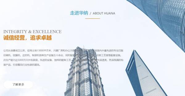 我們公司與石家莊華*塑料包裝有限公司合作中,對這個公司所經(jīng)營的塑料包裝這個行業(yè)提供了網(wǎng)站建設制作設計,與該公司的合作,更多的客戶讓我們公司為其提供網(wǎng)站建設制作設計,通過每一次合作,我們公司不斷完善自己,同時希望合作伙伴在經(jīng)營的路上越來越好。