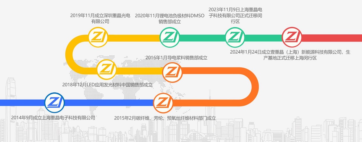 上海重晶電子科技有限公司是專注于電子科技領(lǐng)域的精細(xì)化工導(dǎo)電漿料、LED發(fā)光應(yīng)用材料、碳碳石墨制品、DMSO產(chǎn)品進(jìn)出口貿(mào)易及提供專業(yè)的電子材料解決方案的科技公司。公司于2014年在上海成立,公司注重銳意革新、引領(lǐng)未來,始終堅(jiān)持創(chuàng)新材料理念、誠信經(jīng)營、客戶至上原則,提供最貼心的客戶服務(wù)、與客戶共同開發(fā)、創(chuàng)新、具有國際優(yōu)秀水平的相關(guān)電子材料產(chǎn)品。