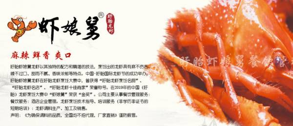 盱眙蝦*舅龍蝦以其獨特的配方和精湛的技法,烹飪出的龍蝦具有麻不傷舌、辣不過口、甜而不膩、香味濃郁等特點。中國·盱眙國際龍蝦節(jié)的成功舉辦,盱眙蝦娘舅龍蝦在盱眙龍蝦烹飪大賽中,曾獲得“盱眙龍蝦烹飪名廚”、“盱眙龍蝦名店”、“盱眙龍蝦十佳商家”榮譽稱號。在2019年的中國(盱眙)龍蝦烹飪大賽中“蝦娘舅”榮獲“金獎”。公司經(jīng)營范圍:餐飲管理服務:餐飲服務:龍蝦烹飪技術指導、培訓服務(非學歷非證書的短期培訓):龍蝦調料生產(chǎn)、加工及銷售:酒店企業(yè)管理。盱眙蝦娘舅是由北京市軍旅書法家、武官,侯振山大校所題,公司成立于2013年6月, 盱眙蝦娘舅餐飲管理有限公司,為學員提供多種口味的龍蝦燒制方法及文字教材。還對學員進行長期的學習指導,為所有學員提供技術交流與行業(yè)交流平臺,創(chuàng)建了盱眙龍蝦廚師微信交流群,目前平臺交流人數(shù)400人。盱眙蝦娘舅龍蝦培訓,以理論與實踐相結合,為盱眙龍蝦培訓、遞交了一份滿意的答卷,送走了一批又一批的盱眙龍蝦崗位技能人才,深受盱眙龍蝦協(xié)會、盱眙龍蝦創(chuàng)業(yè)學院、盱眙縣人力資源局,及全國龍蝦餐飲行業(yè)人士的一致好評。