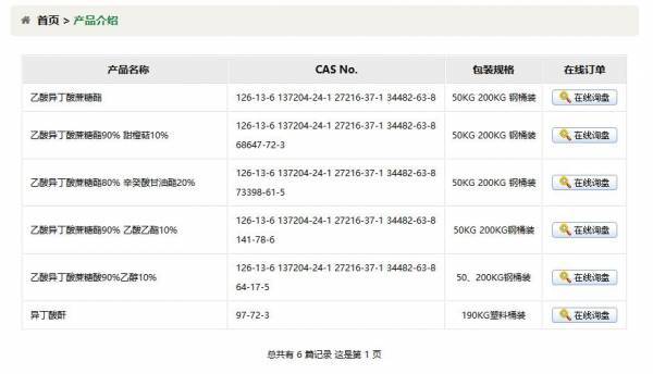 江西天*香料有限公司選用我司企業(yè)寵物用品網(wǎng)站案例,其網(wǎng)站建設(shè)的特點(diǎn)是異丁酸酐,乙酸異丁酸蔗糖酯,辛葵酸甘油酯,二乙酸六異丁酸蔗糖酯,SAIB,天奕香料。用很合適的展示方式、展示效果、站點(diǎn)框架,把客戶(hù)及其用戶(hù)很關(guān)心的問(wèn)題突出表現(xiàn);并以簡(jiǎn)潔明朗的設(shè)計(jì)風(fēng)格,清晰展現(xiàn)公司水平實(shí)力,確保一秒抓住目標(biāo)用戶(hù)眼球,給用戶(hù)留下良好的第一印象。江西天*香料有限公司成立于2011年,是經(jīng)撫州市市場(chǎng)監(jiān)督管理局審核的有資質(zhì)的公司,其統(tǒng)一社會(huì)信用代碼:91361**7571185942G。公司地址:江西省撫州市金溪工業(yè)園C區(qū)檀湖路。