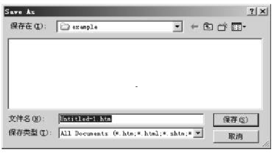 (2)在“保存在”列表框中,確定要把文件保存在哪個文件夾下。在此應(yīng)把文件保存到本地站點的“example”文件夾中。