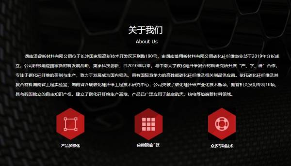 湖南澤睿新材料有限公司位于長沙國家級高新技術(shù)開發(fā)區(qū)環(huán)聯(lián)路190號(hào),由湖南博翔新材料有限公司碳化硅纖維事業(yè)部于2019年分拆成立。公司積極響應(yīng)國家新材料發(fā)展戰(zhàn)略,秉承科技創(chuàng)新,自2010年以來,與中南大學(xué)碳化硅纖維復(fù)合材料研究所開展“產(chǎn)、學(xué)、研”合作,專注于碳化硅纖維的研制與生產(chǎn),致力于發(fā)展成為國內(nèi)領(lǐng)先、具有國際競爭力的高性能碳化硅纖維及相關(guān)制品供應(yīng)商。依托碳化硅纖維及其復(fù)合材料湖南省工程實(shí)驗(yàn)室、湖南省含鈹碳化硅纖維工程技術(shù)研究中心,公司突破了碳化硅纖維產(chǎn)業(yè)化技術(shù)瓶頸,擁有相關(guān)發(fā)明專利10項(xiàng),具有我國獨(dú)立的自主知識(shí)產(chǎn)權(quán),建立了碳化硅纖維生產(chǎn)基地,產(chǎn)品已廣泛應(yīng)用于航空航天、核電等熱端新材料領(lǐng)域。